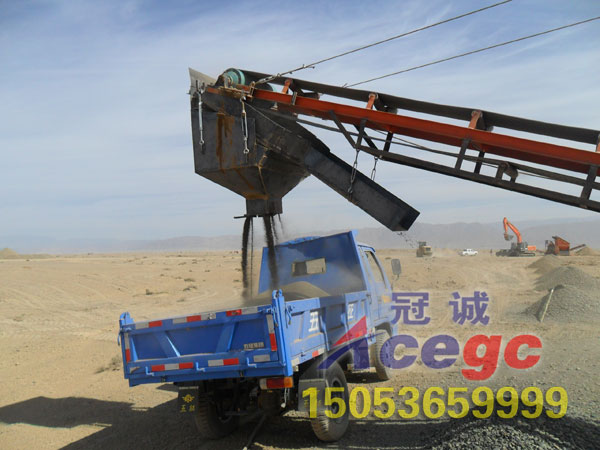 臥式干選機分兩種,一種是帶尾料輸送桿的,采用一臺裝載機上料,廢料用尾料輸送桿輸送出去,使用于4米左右沙層,上料高度為3.7米,裝載機可以直接上料不用助坡。另外一種是不帶尾料輸送帶,尾料用裝載機清除走,整機要用兩臺裝載機,上料高度為3.7米,裝載機可以直接上料不用助坡。整機用電45kw.2